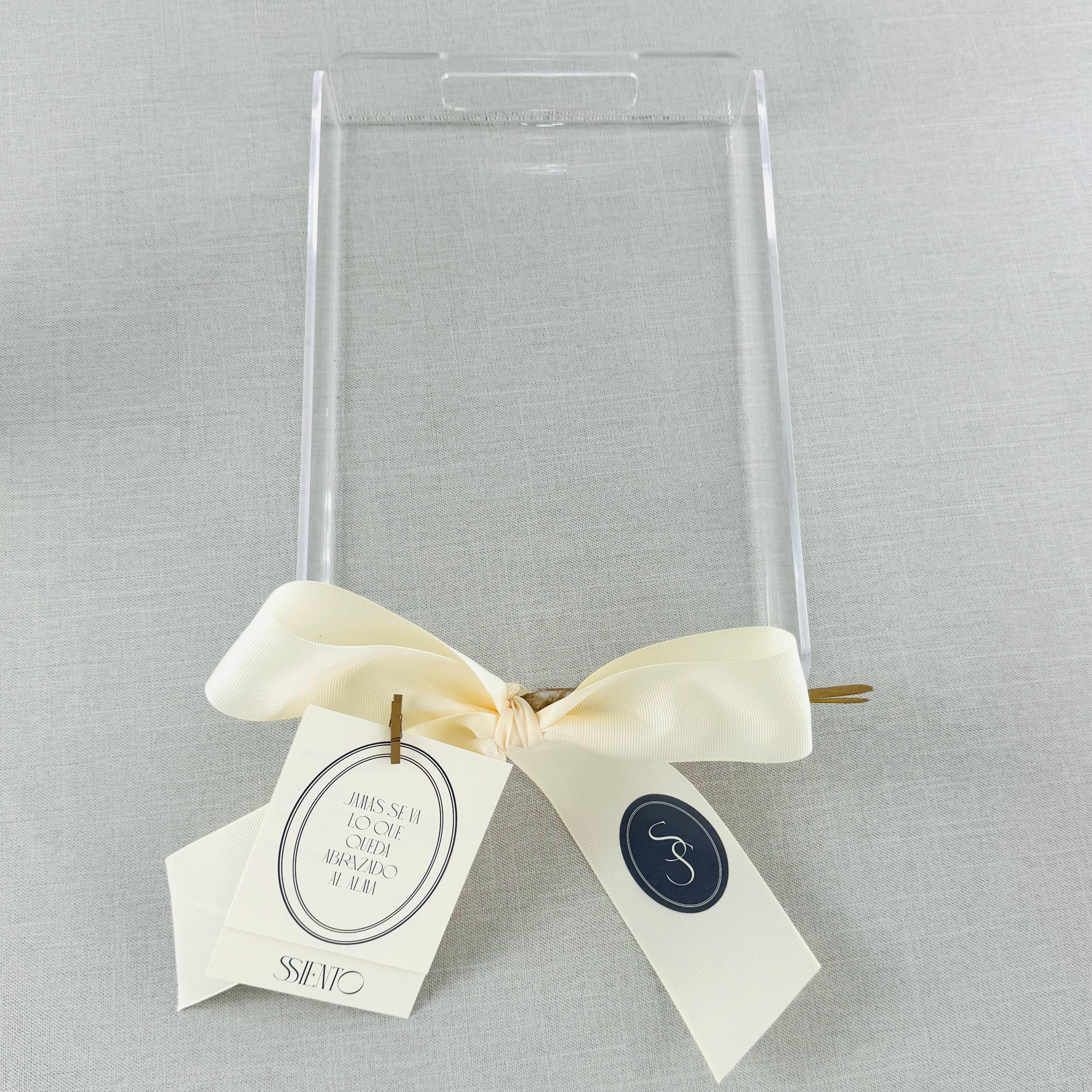 Charolas de acrílico transparente. Su diseño es resistente y sus medidas: