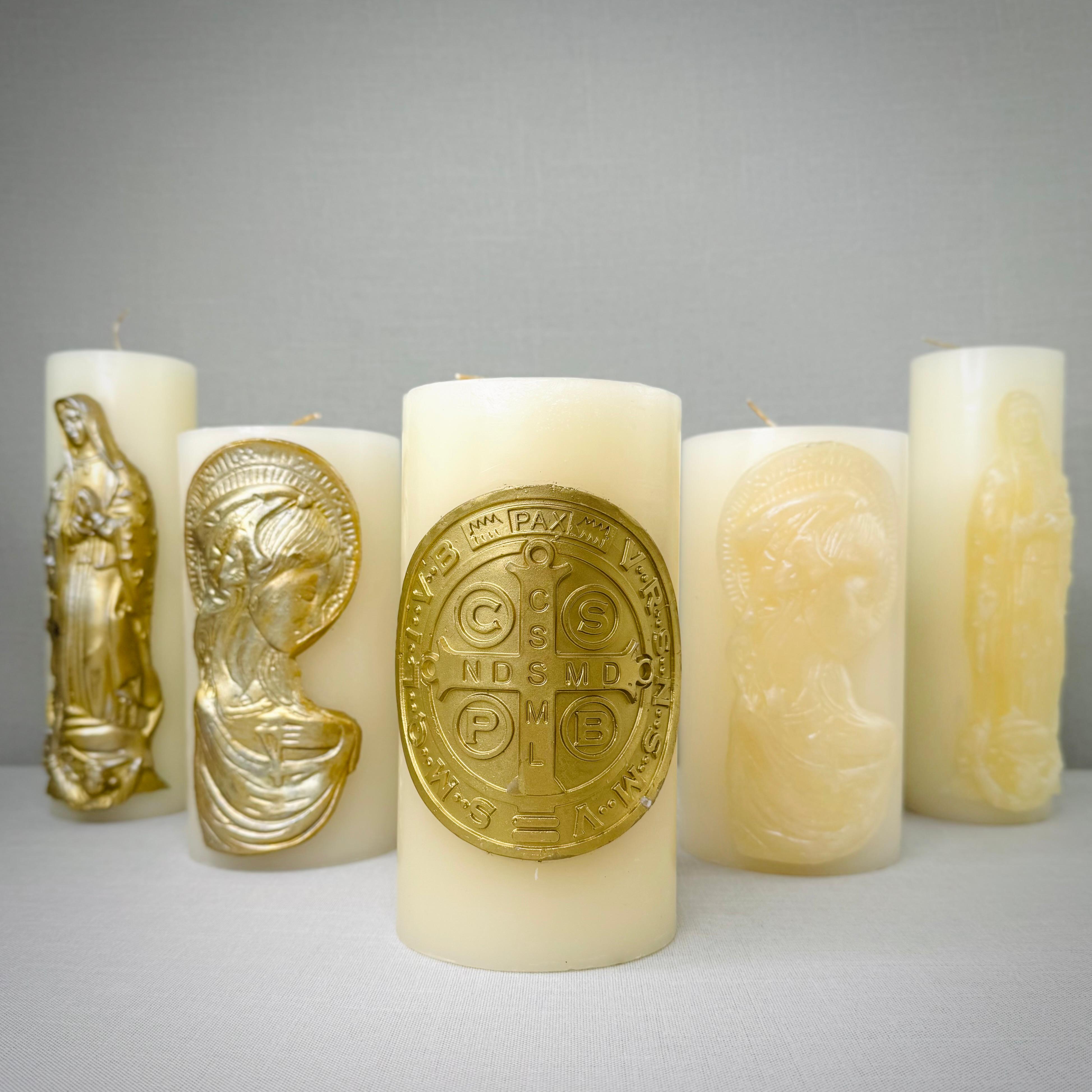 Cirio elaborado en parafina de alta calidad. Símbolo profundo de espiritualidad y recogimiento.