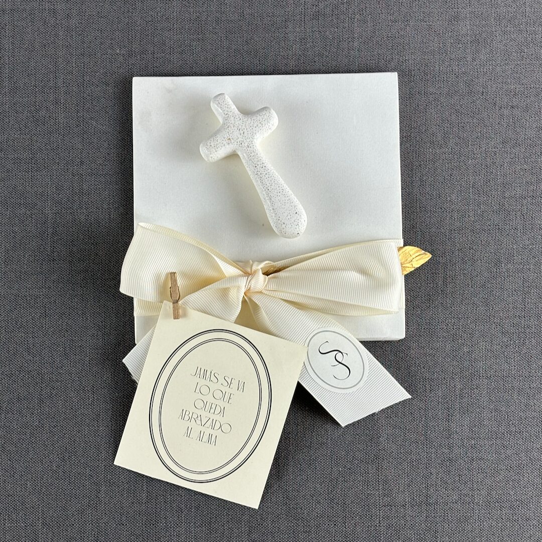 Cruz artesanal de la colección de arcilla, disponible en tres tamaños: