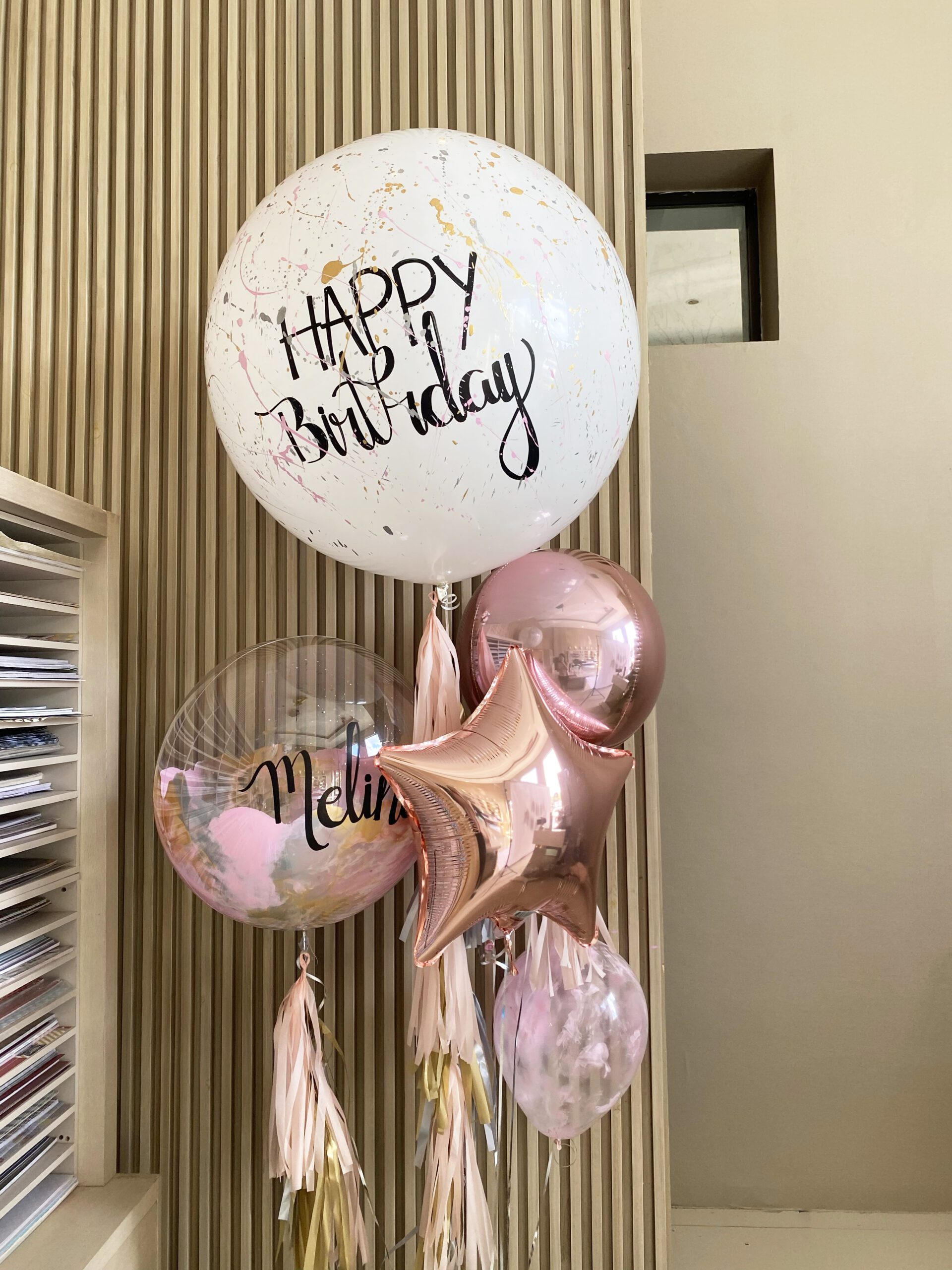 Globos personalizados de 24″, con opciones: solo, con 2 orbitz o con 4 complementos.